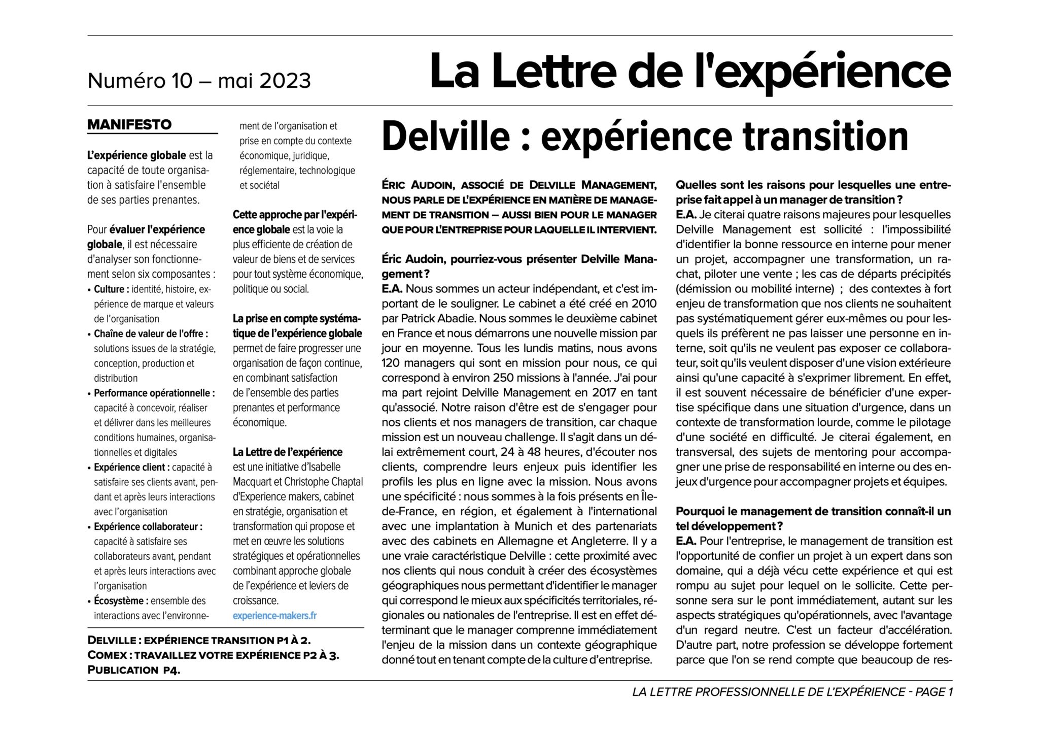 La Lettre de l’expérience est éditée par Christophe Chaptal et Isabelle Macquart, directeurs associés du cabinet Experience makers.